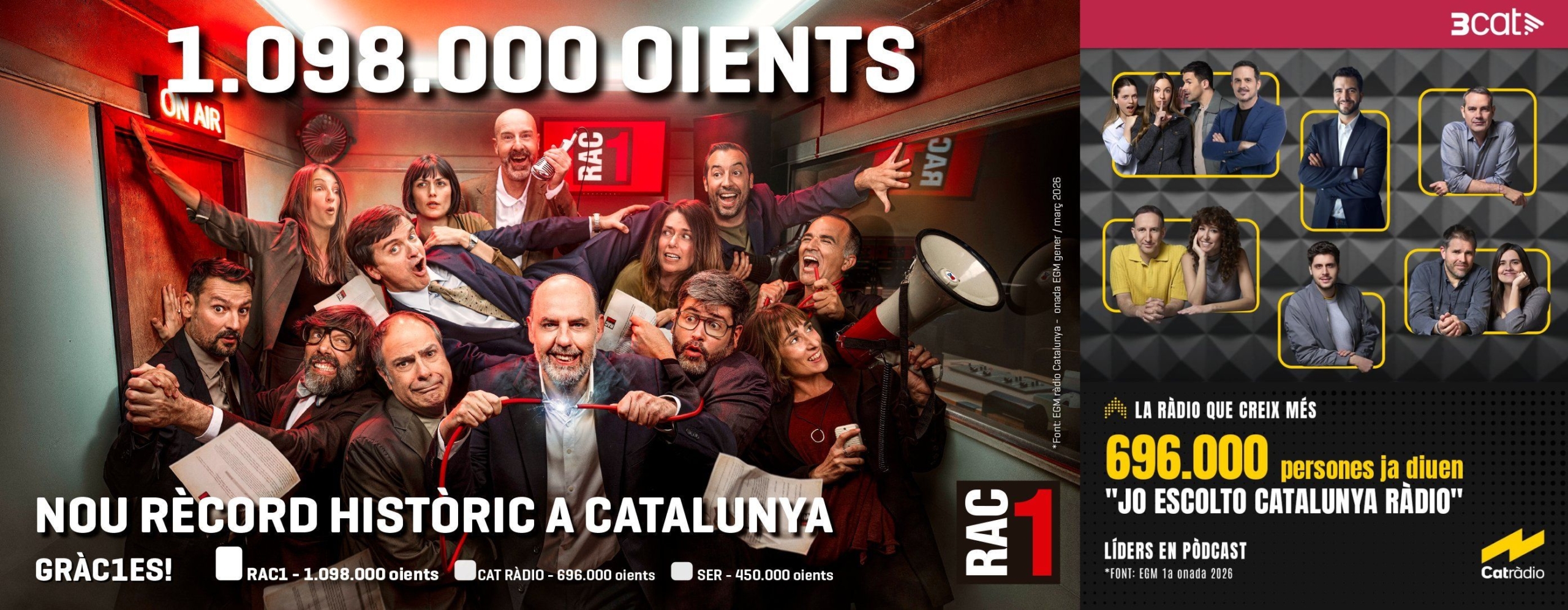 De nou, excepcionals xifres de la ràdio en català en el 1r EGM de l’any. L’audiència de RAC1 arriba als